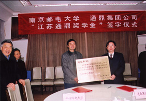 根據協(xié)議,通鼎集團公司在南京郵電大學設立總額為50萬元人民幣的“江蘇通鼎獎學金”,分五年(2005年—2009