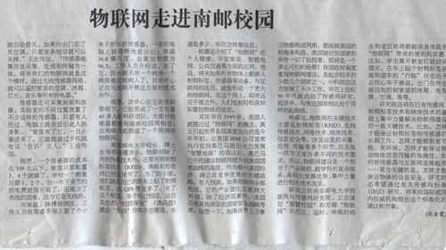 【人民郵電報】物聯網走進南郵校園