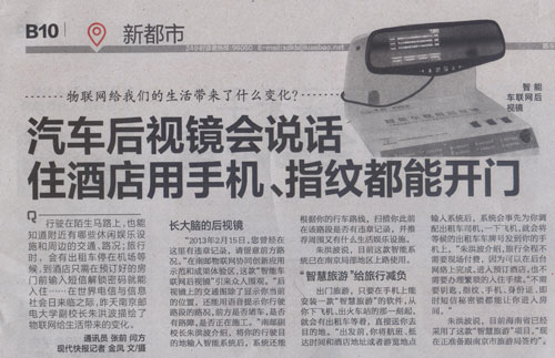 【現代快報】汽車后視鏡會說話 住酒店用手機、指紋都能開門