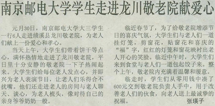 【新績(jī)溪】南京郵電大學(xué)學(xué)生走進(jìn)龍川敬老院獻(xiàn)愛(ài)心