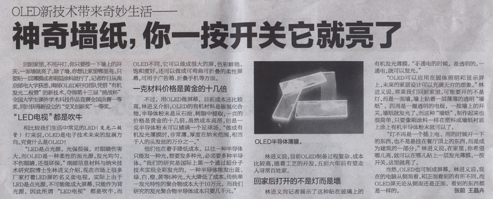 【南京晨報】神奇墻紙,你一按開關它就亮