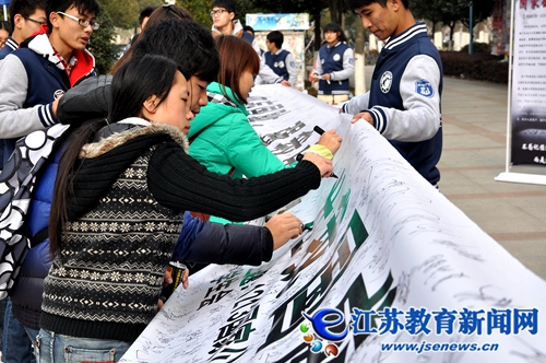 南郵大學生在“牢記中華民族屈辱與抗爭的歷史”橫幅上簽名