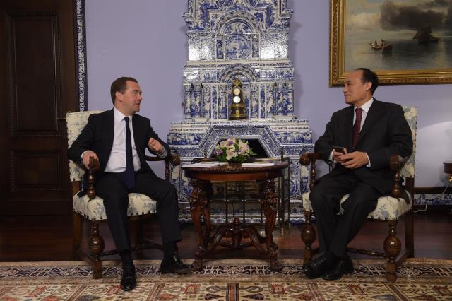 1月19日,俄羅斯總理梅德韋杰夫在莫斯科郊外官邸會見趙厚麟。(圖片來源:俄羅斯網(wǎng)站)