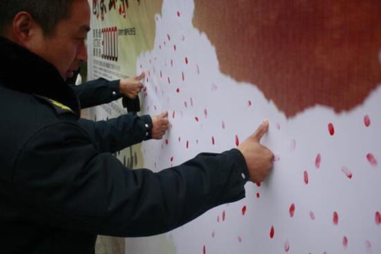 活動(dòng)現(xiàn)場(chǎng)由“和平之花”——佩戴紫金草徽章行動(dòng)、“墨哀英魂”——主題書(shū)法展、“眾指成城”——指印寄思等別出心裁、內(nèi)涵豐富、寓意深刻的系列活動(dòng)組成。上午十時(shí)零一分,隨著防空警報(bào)聲在南京上空響起,在場(chǎng)同學(xué)佩帶著由南京廣播電視臺(tái)發(fā)放的象征和平的紫金草徽章集體默哀。隨后,活動(dòng)有序開(kāi)展,同學(xué)們依次參觀了書(shū)法作品展,在中國(guó)地圖上按下紅色指印,并在 “國(guó)行公祭,祀我國(guó)殤。永矢弗諼,祈愿和平”的標(biāo)語(yǔ)上簽名,表明了同學(xué)們齊心協(xié)力,攜手共進(jìn),誓親手捍衛(wèi)祖國(guó)領(lǐng)土完整的決心。本次系列活動(dòng)由12月9日的“金陵名人堂”報(bào)告會(huì)拉開(kāi)序幕,報(bào)告會(huì)邀請(qǐng)了侵華日軍南京大屠殺遇難同胞紀(jì)念館副館長(zhǎng)陳俊峰先生進(jìn)行有關(guān)日軍侵華史的演講,激發(fā)了南郵學(xué)子的愛(ài)國(guó)熱情。