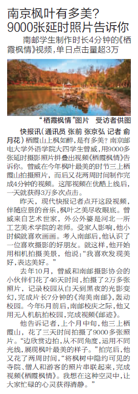 【現代快報】南京楓葉有多美?9000張延時照片告訴你
