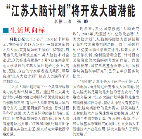 【科技日報】“江蘇大腦計劃”將開發大腦潛能