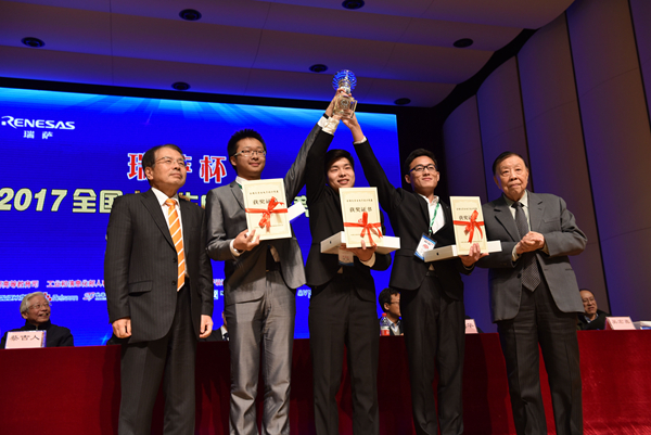 日前,由教育部和工信部聯合主辦的2017全國大學生電子設計競賽頒獎儀式在北京航空航天大學舉行。大賽組委會主任、兩院院士王越為獲得本次競賽本科組最高獎的南京郵電大學代表隊頒獎。
