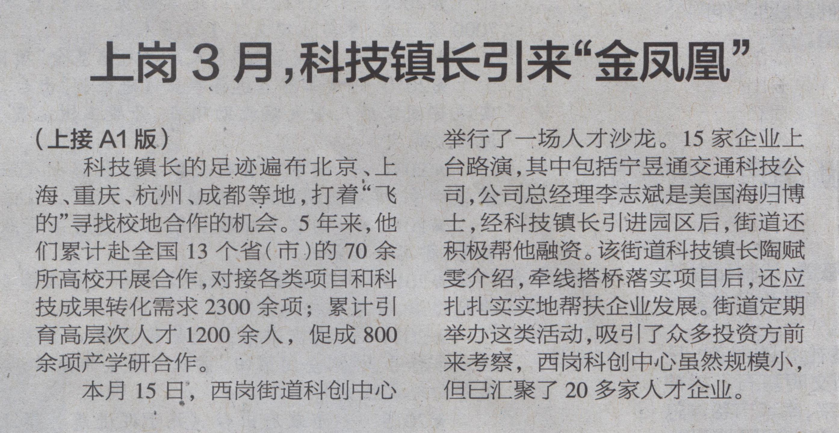 【南京日報】上崗3月,科技鎮長引來“金鳳凰”