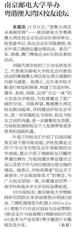 【人民郵電報】南京郵電大學舉辦粵港澳大灣區校友論壇