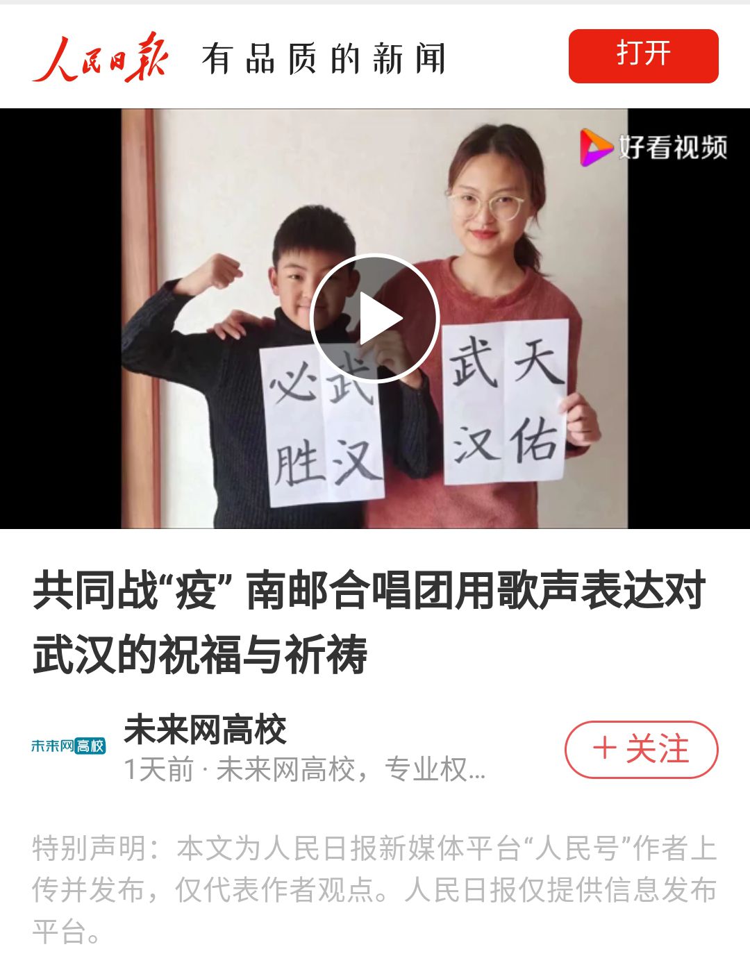 【人民日報客戶端】共同戰“疫” 南郵合唱團用歌聲表達對武漢的祝福與祈禱