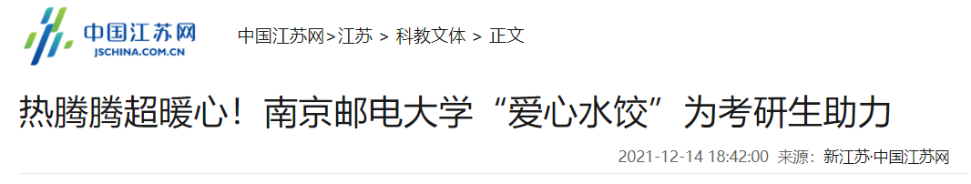【中國江蘇網】熱騰騰超暖心!南京郵電大學“愛心水餃”為考研生助力