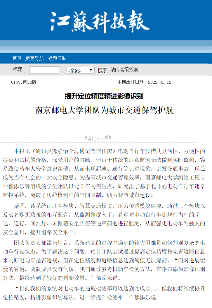 【江蘇科技報(bào)】南京郵電大學(xué)團(tuán)隊(duì)為城市交通保駕護(hù)航