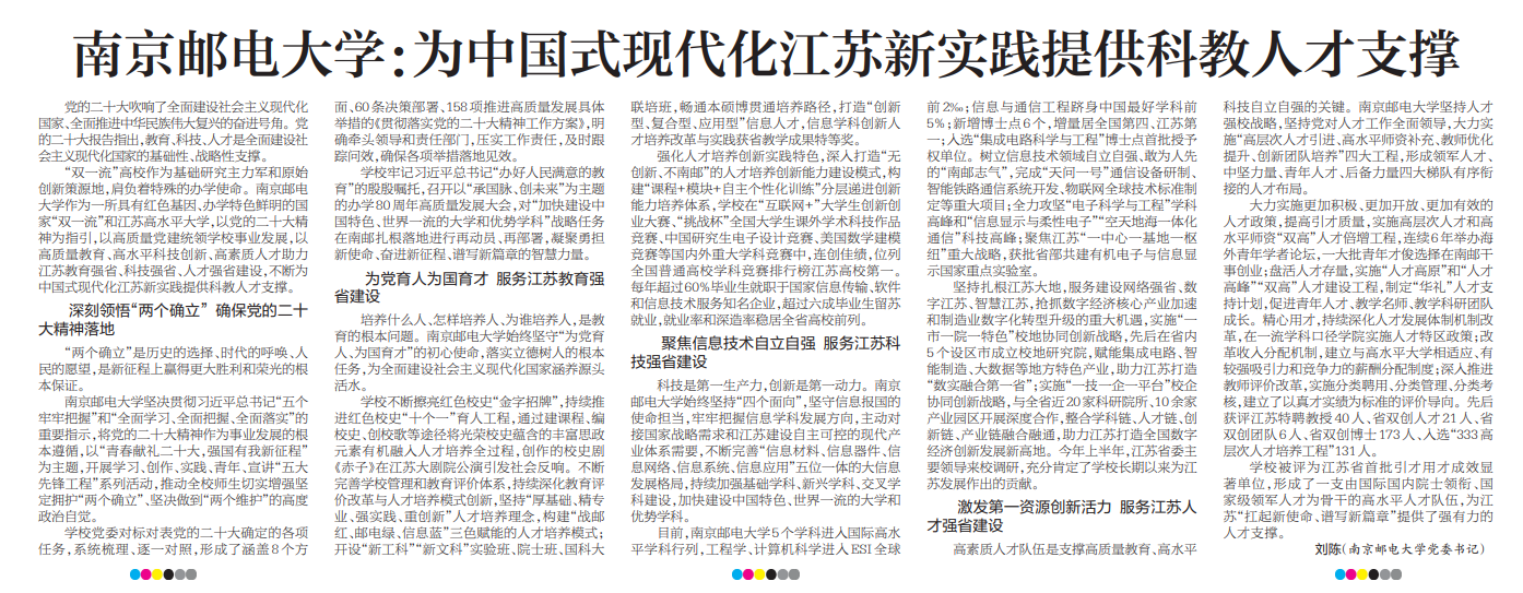 【新華日報】南京郵電大學:為中國式現代化江蘇新實踐提供科教人才支撐