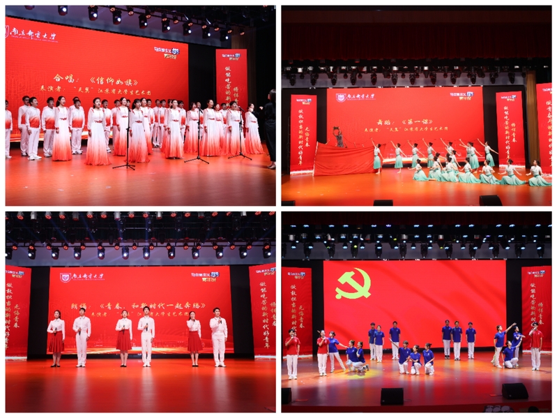 活動現場,“天翼”江蘇省大學生藝術團通過合唱《信仰如旗》、舞蹈《第一課》、朗誦《青春,和新時代一起奔騰》及音詩畫表演《我們,在這里起航》等節目,號召新時代南郵青年以先進青年榜樣為標桿,用青春的能動力和創造力激蕩起民族復興的澎湃春潮,讓青春在奮斗中綻放絢麗之花。