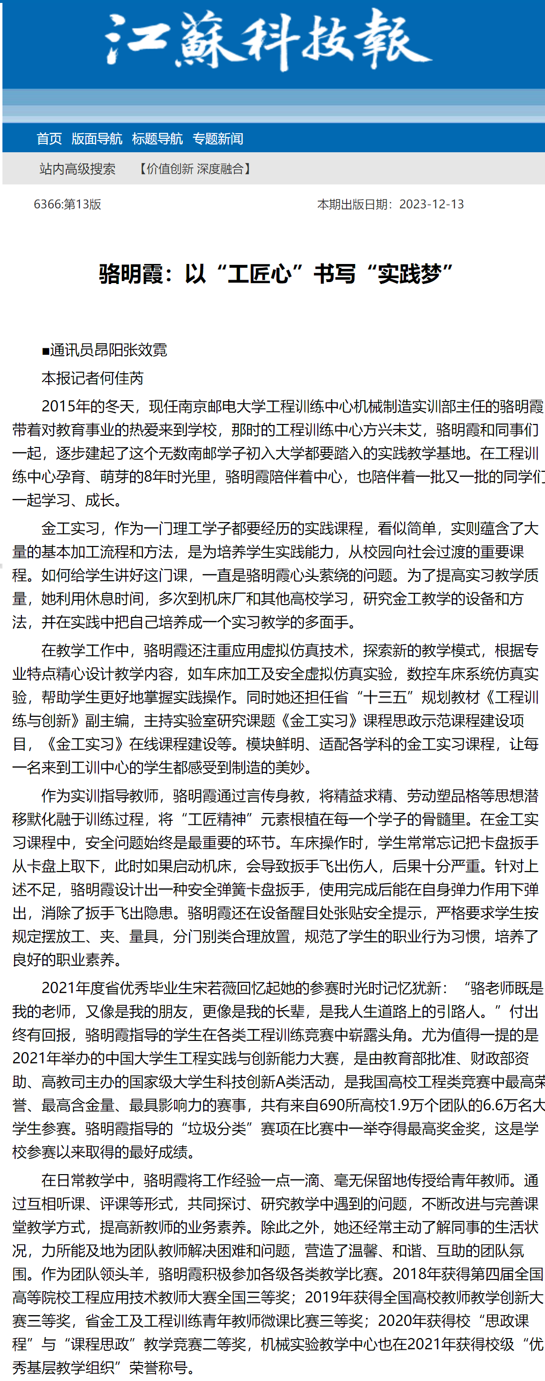 【江蘇科技報】駱明霞:以“工匠心”書寫“實踐夢”