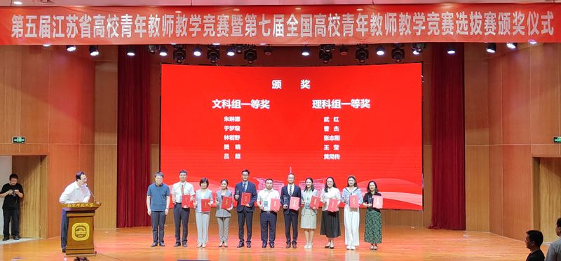 武紅老師(左三)獲第五屆江蘇省高校青年教師教學(xué)競賽理科組一等獎第一名