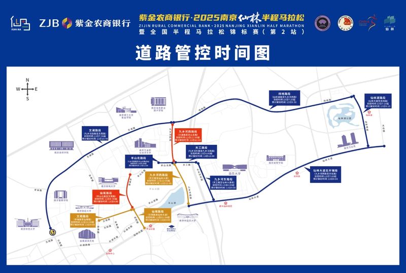 三、根據比賽進行情況,將對下述道路采取分時分段交通管控措施,除持2025南京仙林半程馬拉松專用證件的車輛外,禁止其他車輛通行。