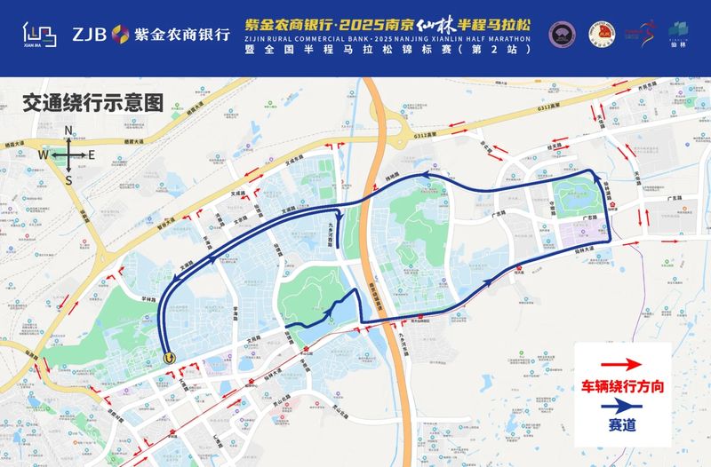 一、2025南京仙林半程馬拉松賽主要比賽線路和方向: