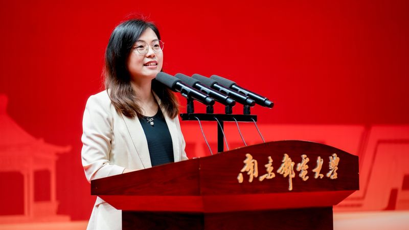 葉美蘭代表學校向畢業生表示誠摯祝賀,向辛勤培育他們的老師們和家人們致以衷心感謝。她以《以青春風采奔赴山海天地》為題,深情回顧了學校與畢業生們共同成長的四年。“回顧這四年,是我們共同見證偉大祖國發展的四年,是我們與奮進南郵共享榮耀的四年,是學校與你們共享喜悅的四年。”她說,“希望你們夠勇敢,有‘前路未卜亦敢往’的孤勇;希望你們有追求,有‘不破樓蘭終不還’的決心;希望你們肯脫俗,有‘一片冰心在玉壺’的純粹”,要永葆南郵人對創新、拼搏、事業的追求,以“厚德弘毅”的擔當直面挑戰、用“求是篤行”的力量破解困局,在強國建設、民族復興的偉大征程中挺膺擔當。
