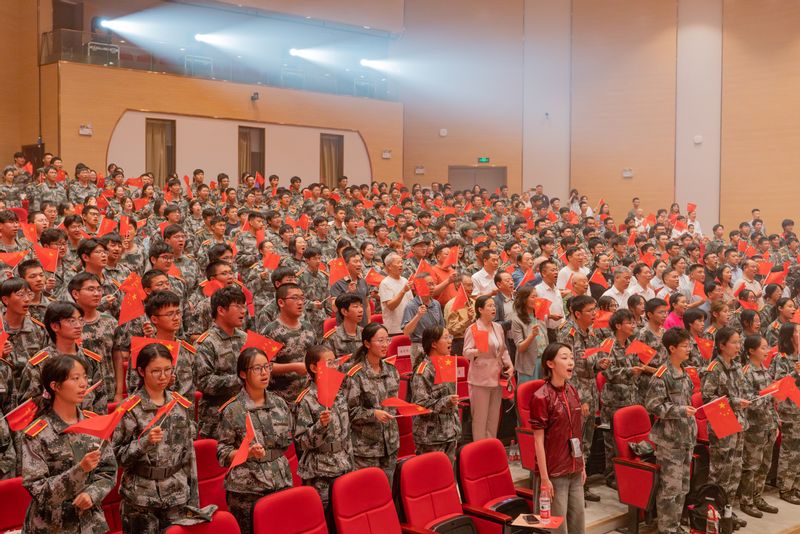 在中華人民共和國成立76周年前夕,為紀(jì)念中國人民抗日戰(zhàn)爭暨世界反法西斯戰(zhàn)爭勝利80周年,9月29日下午,南京郵電大學(xué)與江蘇省紅色文化研究會共同舉辦的“熱血鑄榮光”——弘揚偉大抗戰(zhàn)精神 賡續(xù)傳承紅色基因主題文藝展演在南郵仙林校區(qū)舉行。原南京軍區(qū)前線文工團的藝術(shù)家們與南郵大學(xué)生藝術(shù)團成員聯(lián)袂獻演,為現(xiàn)場師生帶來一場高水準(zhǔn)、沉浸式的紅色藝術(shù)盛宴。展演由原前線文工團著名主持人俞力揚、徐彤主持。中央軍委獨立功勛榮譽章、國防部解放獎?wù)隆⑷A東軍區(qū)渡江勝利章獲得者,95歲的抗戰(zhàn)老兵,原中國人民解放軍南京政治學(xué)院正軍職教學(xué)顧問吳登志親臨現(xiàn)場,當(dāng)現(xiàn)場師生得知這位從烽火硝煙中走來的英雄就在身邊時,經(jīng)久不息的掌聲響徹全場。