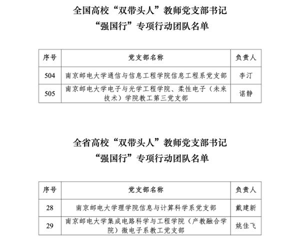 南郵4個(gè)黨支部入選高校“雙帶頭人”教師黨支部書(shū)記“強(qiáng)國(guó)行”專項(xiàng)行動(dòng)團(tuán)隊(duì)