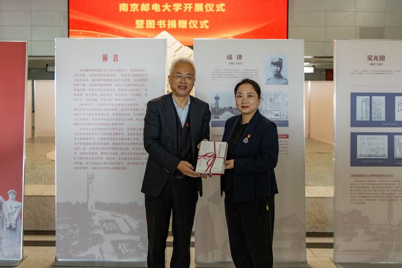 10月23日下午,《革命俊彥高校榮光——雨花英烈中的青年學子》展覽在仙林校區圖書館二樓大廳啟幕?;顒蝇F場,雨花臺烈士紀念館高校思政專班負責人周潔為圖書館捐贈珍貴的史料叢書,圖書館接受叢書捐贈并回贈證書。展覽吸引千余名師生參觀。