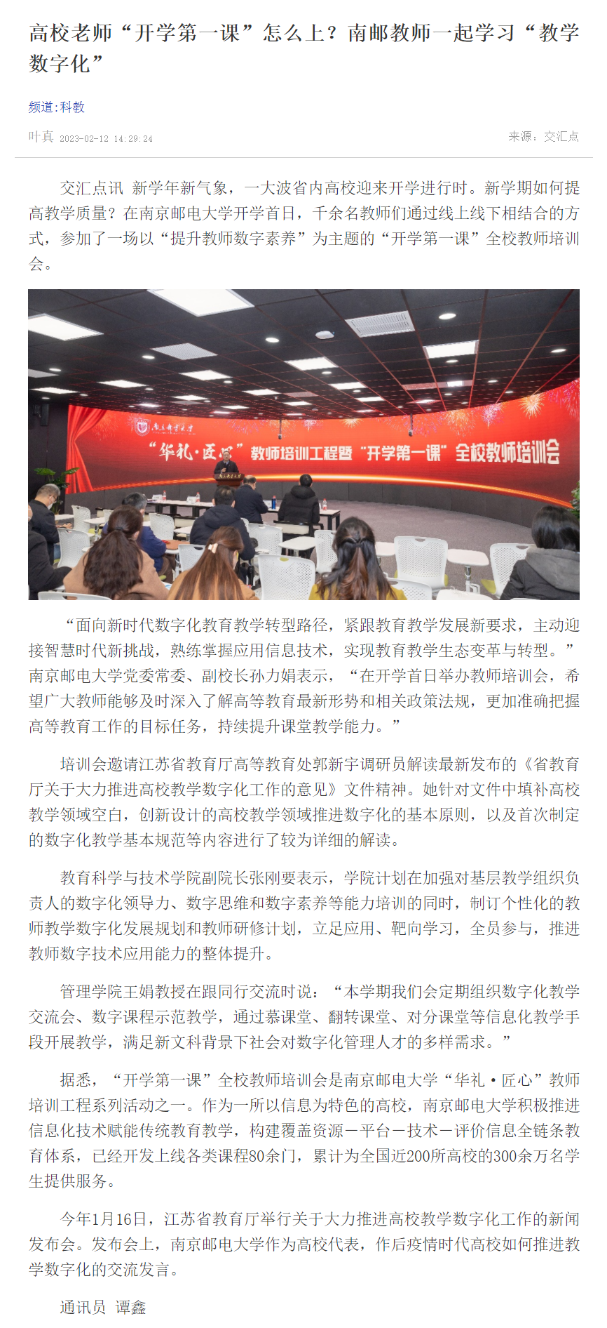 | 【新華日報客戶端】高校老師“開學第一課”怎么上?南郵教師一起學習“教學數字化” |