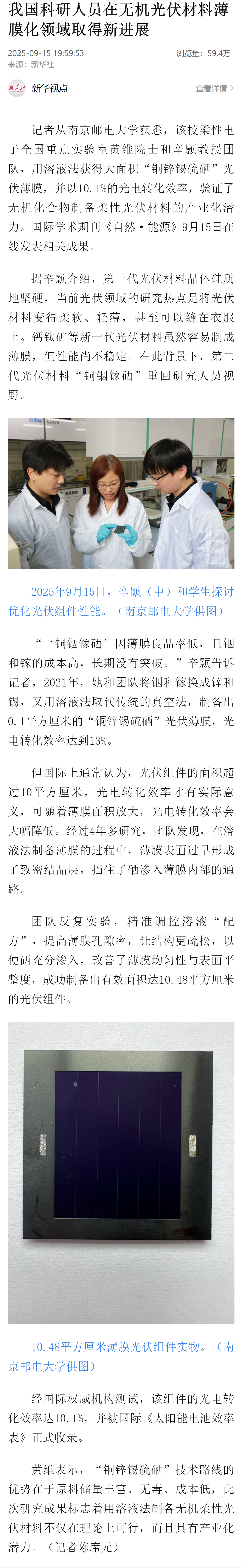 | 【新華社客戶端】我國科研人員在無機(jī)光伏材料薄膜化領(lǐng)域取得新進(jìn)展 |