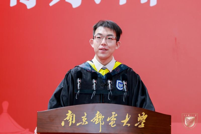 Setting sail in youth, the farewell song never ends, and throughout all seasons at NJUPT, love endures. Graduate representative Tang Jinpu from the School of Integrated Circuits and Engineering (Industry-Education Integration School) expressed his heartfelt gratitude. Saying thank you comes from being shaped by NJUPT, molded in character and spirit; it is gratitude to the mentors who broadened my horizons and tolerated my growth; it is appreciation for my parents who accompanied me in the past and protected my future. He said, The most important lesson in undergraduate life is to recognize and remember kindness, love others and be loved. In the future, he vowed to strive tirelessly for NJUPT to become a world-class university with distinctive features in the field of electronic information.