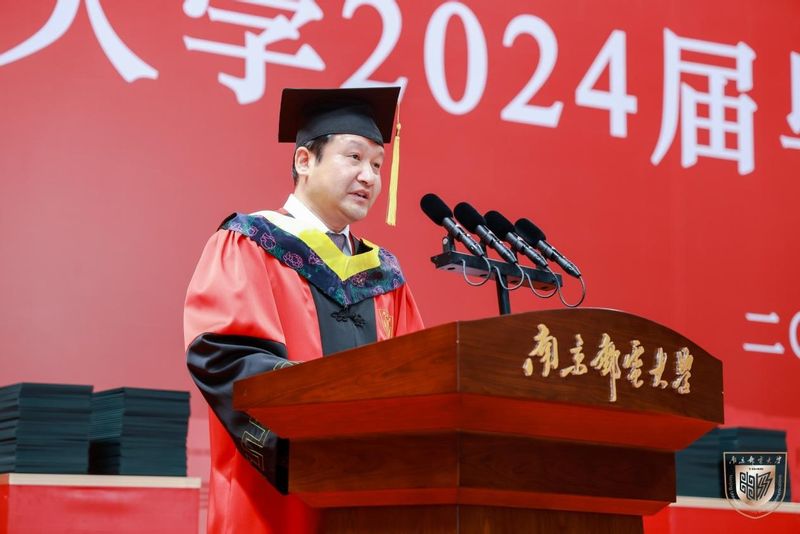 Teacher representative, Professor Ling Haifeng from the School of Materials Science and Engineering, who completed his bachelor's, master's, and doctoral studies at NJUPT, reflected on his academic journey and growth at the university. He shared three expectations for the graduates: to become transmitters of information serving the nation by aligning personal development with national progress, to uphold integrity and trustworthiness, and to practice gratitude. Today you are an NJUPT graduate, and you will always remain an NJUPT graduate, he affirmed.