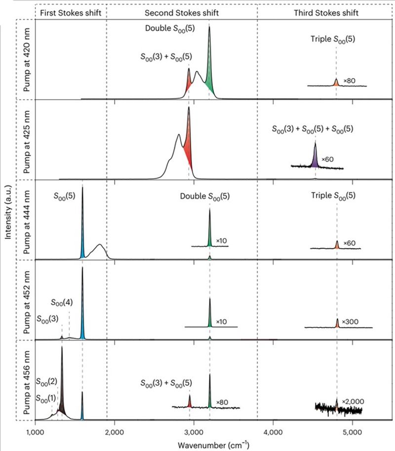 This groundbreaking discovery overturns the traditional nonlinear optics paradigm of “high energy for high gain” and has been highly praised by international peer reviewers, who noted that the study opens a new perspective to perfectly address the worldwide challenge of insufficient Raman gain and is expected to reshape the direction of Raman lasing research, with broad applicability across different material systems. The findings expand the application scenarios of organic semiconductors, pioneering a new direction for organic semiconductor Raman lasers and reinforcing China's leading position in flexible electronics and photonics. This technology holds promise for applications in visible-light communications, portable real-time explosives detection, and wearable non-invasive health monitoring.